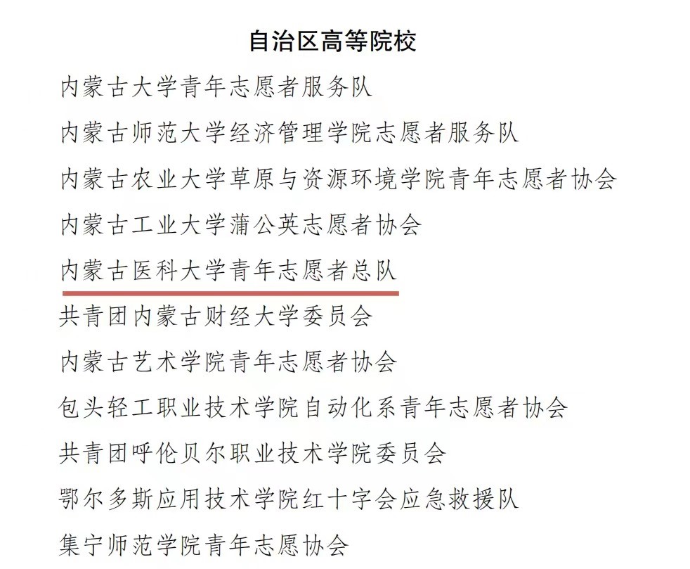 内蒙古医科大学青年志愿者总队荣获2023年