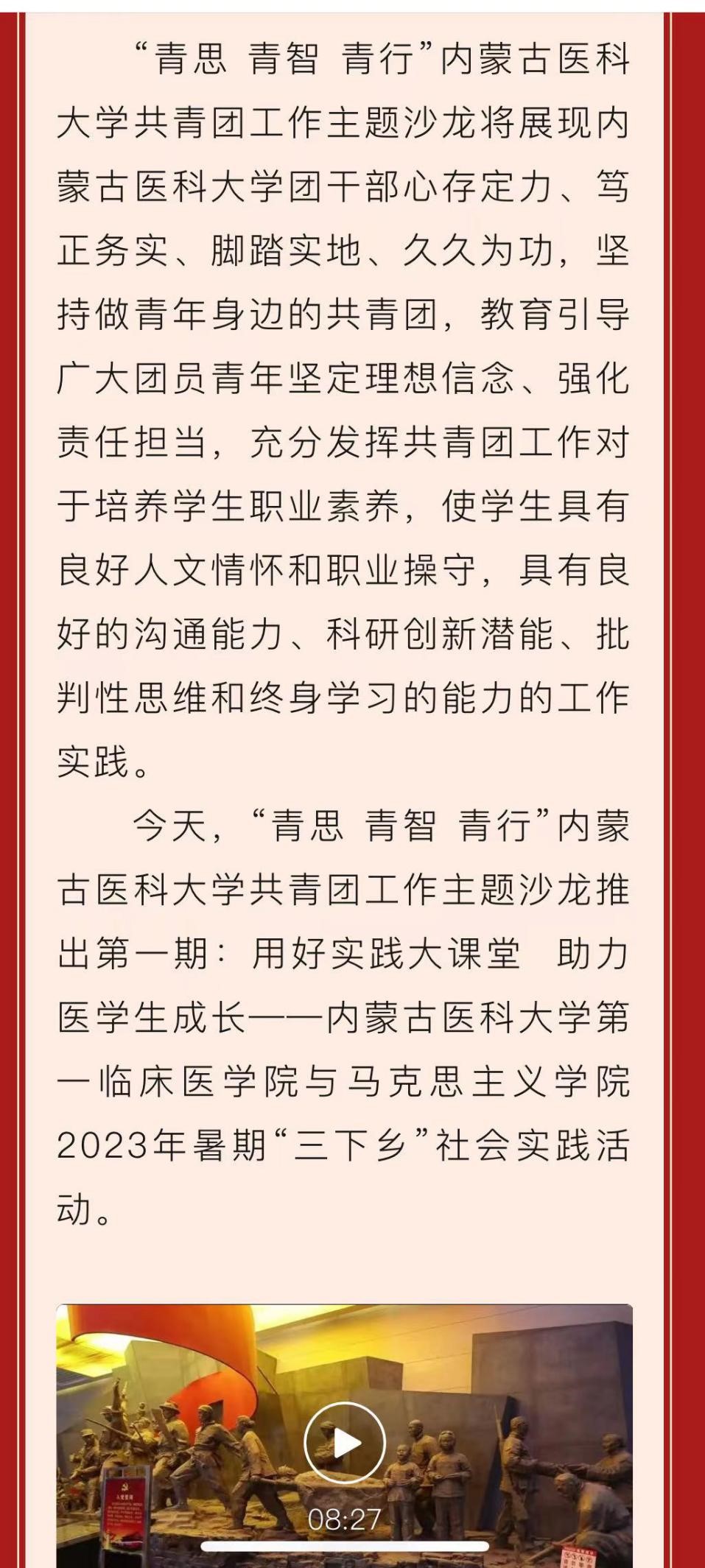 “青思 青智 青行”内蒙古医科大学共青团工作主题沙龙上线