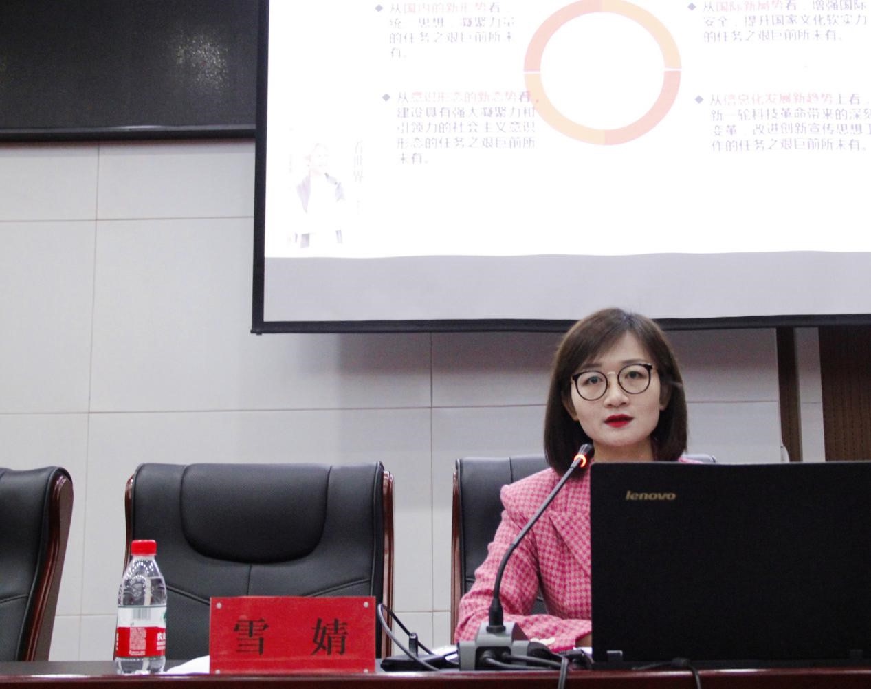 培训第一讲由学校团委书记雪婧作题为“强化政治引领 守好团属意识形态阵地 筑牢团员青年思想防线”的讲授。她指出,共青团是政治组织,要始终坚持“党旗所指就是团旗所向”,共青团作为广大青年在实践中学习中国特色社会主义和共产主义的学校,要从政治上着眼、从思想上入手、从青年特点出发,帮助他们早立志、立大志,从内心深处厚植对党的信赖、对中国特色社会主义的信心、对马克思主义的信仰。